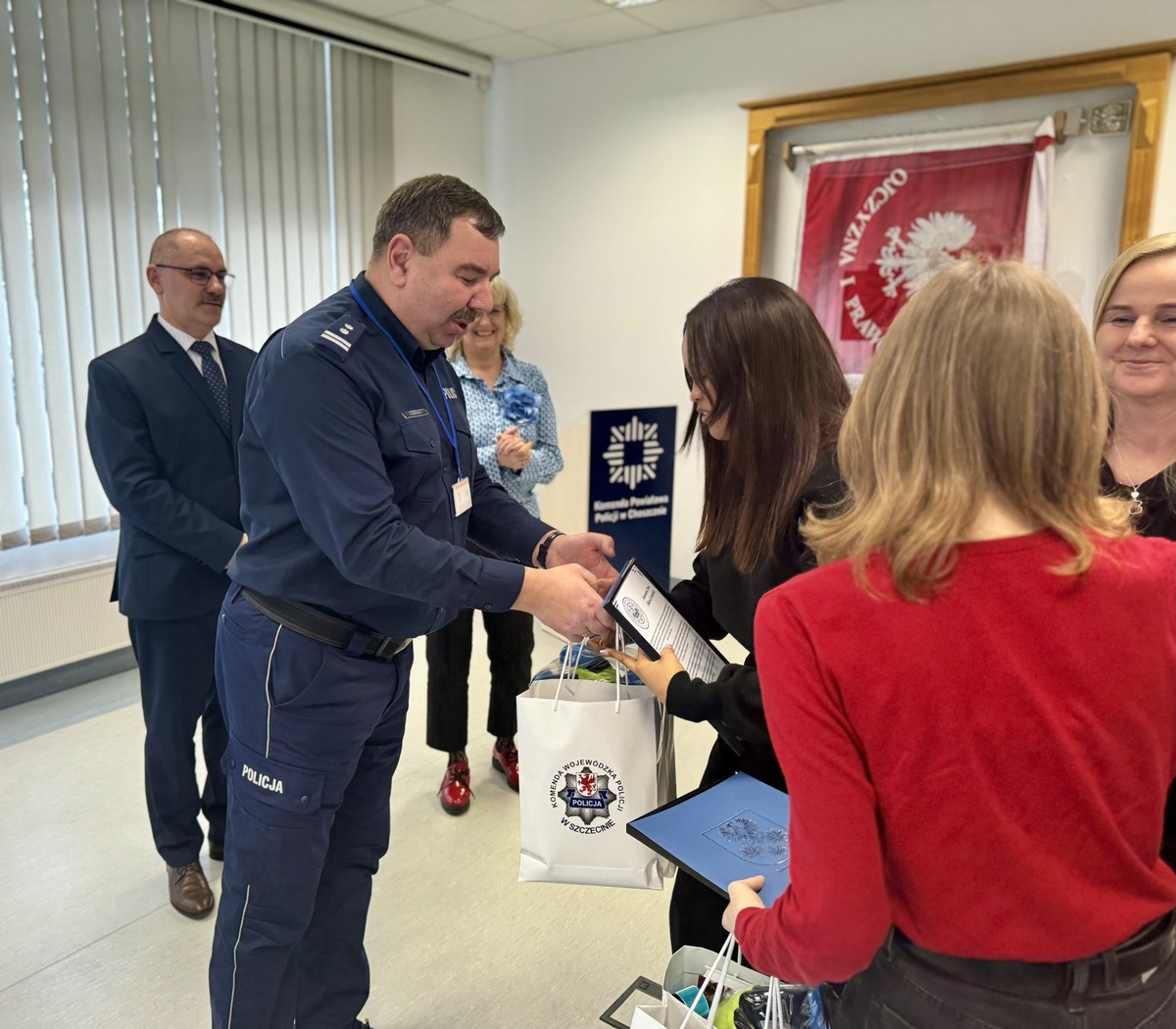 Dziś, w sali odpraw Komendy Powiatowej Policji w Choszcznie, odbyło się uroczyste spotkanie, podczas którego Komendant Powiatowy Policji, mł. insp. Bogdan Marciniak, wspólnie ze Starostą Choszczeńską Wiolettą Kaszak oraz Wicestarostą Stanisławem Rydzem, uhonorowali niezwykłą postawę obywatelską dwóch uczennic Zespołu Szkół nr 1 w Choszcznie.