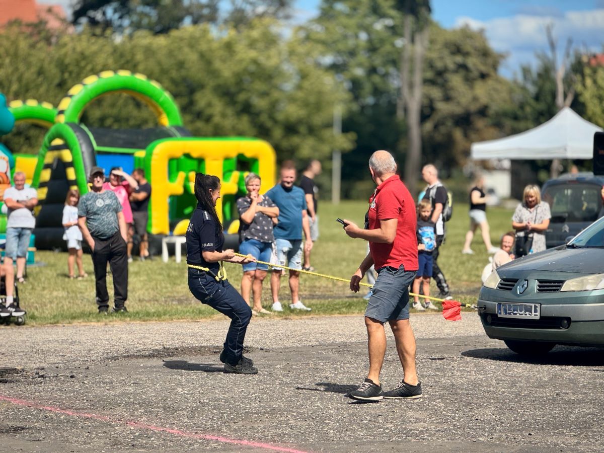 Podczas festynu każdy mógł znależć coś dla siebie. Na uczestników czekało mnóstwo atrakcji, takich jak przejażdżka motocyklem, gry i konkursy. Policjantka asp. sztab. Julita Bogacz również wzięła udział w jednym z wyzwań, które zostało przygotowane przez organizatorów i poradziła sobie znakomicie, przy czym zachęciła innych do wzięcia udziału.