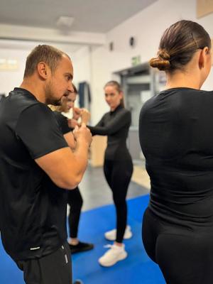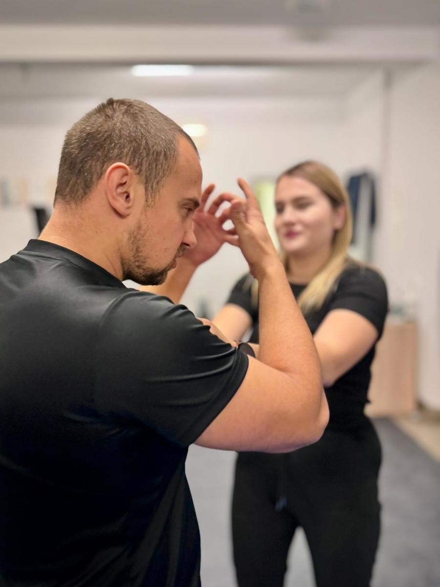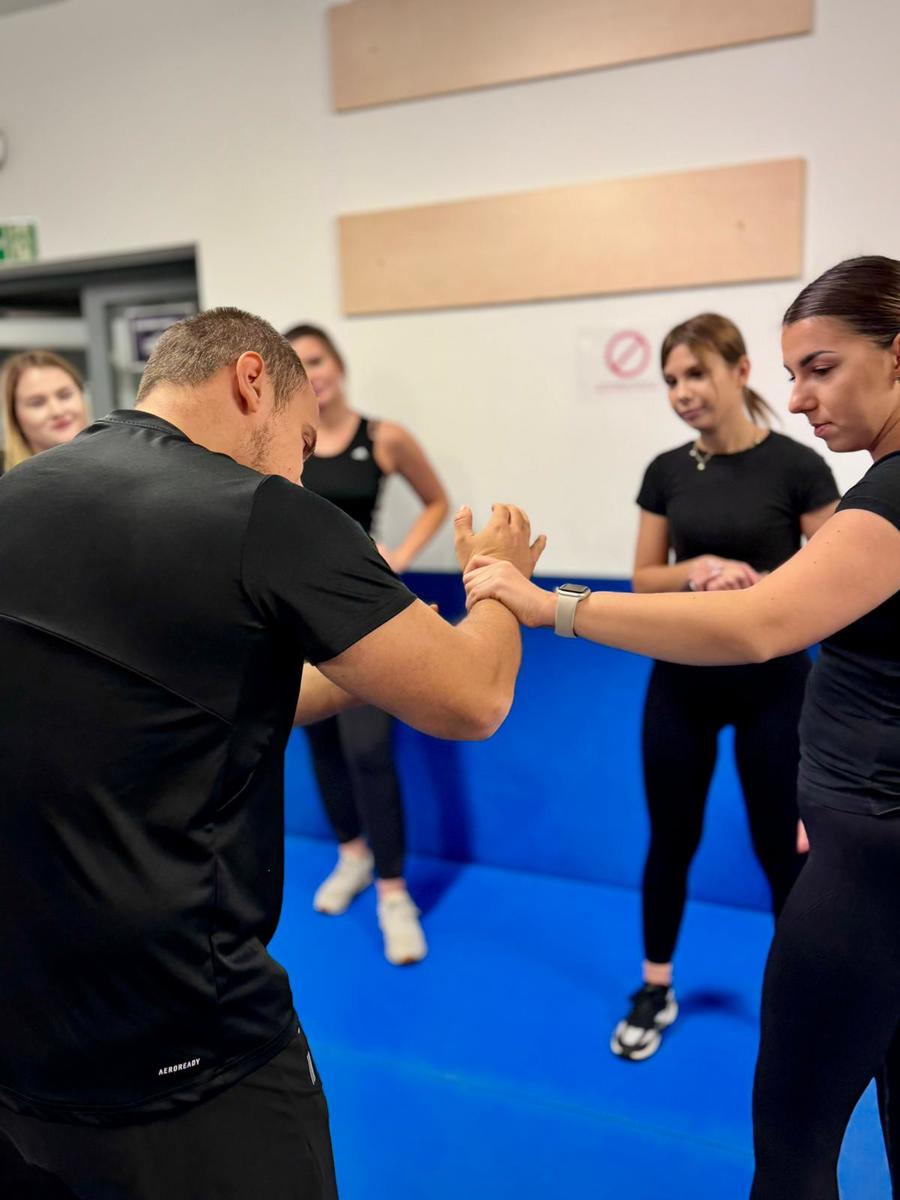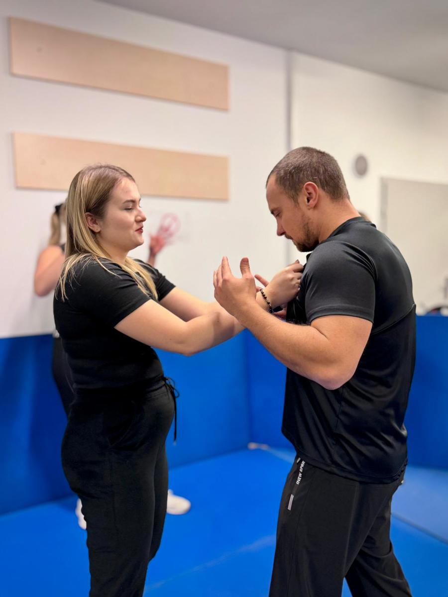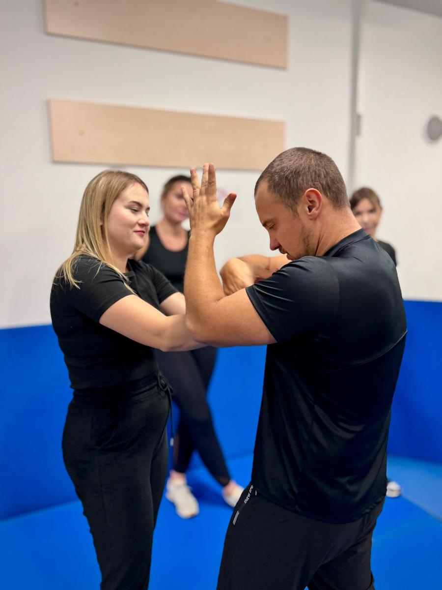 Każda uczestniczka mogła przećwiczyć prezentowane techniki, co pozwoliło lepiej zrozumieć mechanikę ruchu i nabrać pewności siebie. Ćwiczenia były prowadzone z dbałością o bezpieczeństwo, a instruktor na bieżąco udzielał wskazówek dotyczących prawidłowego wykonywania poszczególnych elementów.
